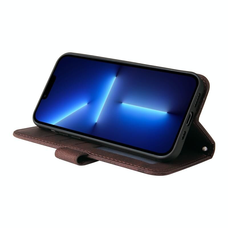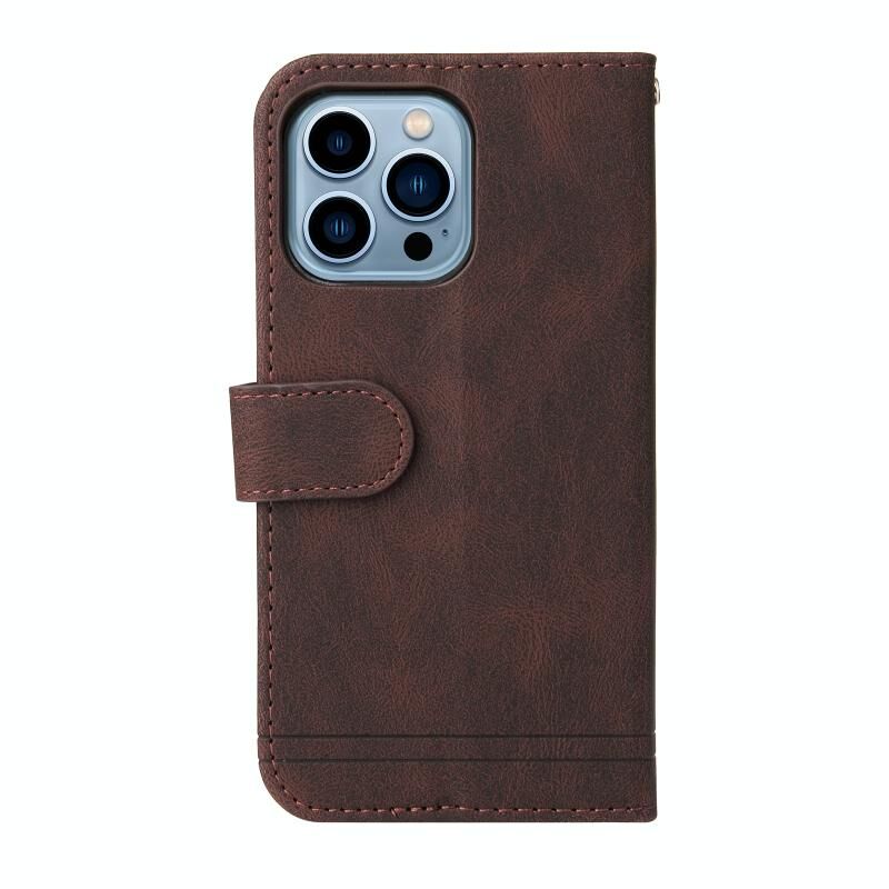 For iPhone 13 Pro Max Skin Feel Life Tree Metal Button Horizontal Flip Leather Case with Holder & Card Slot & Wallet & Photo Frame & Strap (Brown)