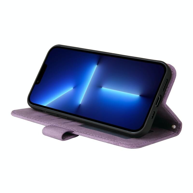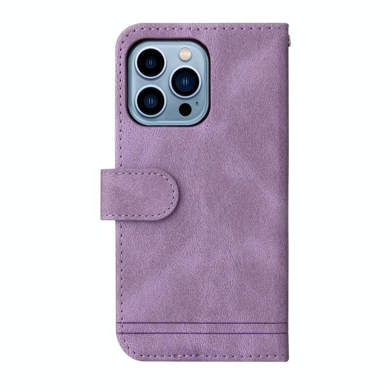 For iPhone 13 Pro Max Skin Feel Life Tree Metal Button Horizontal Flip Leather Case with Holder & Card Slot & Wallet & Photo Frame & Strap (Purple)