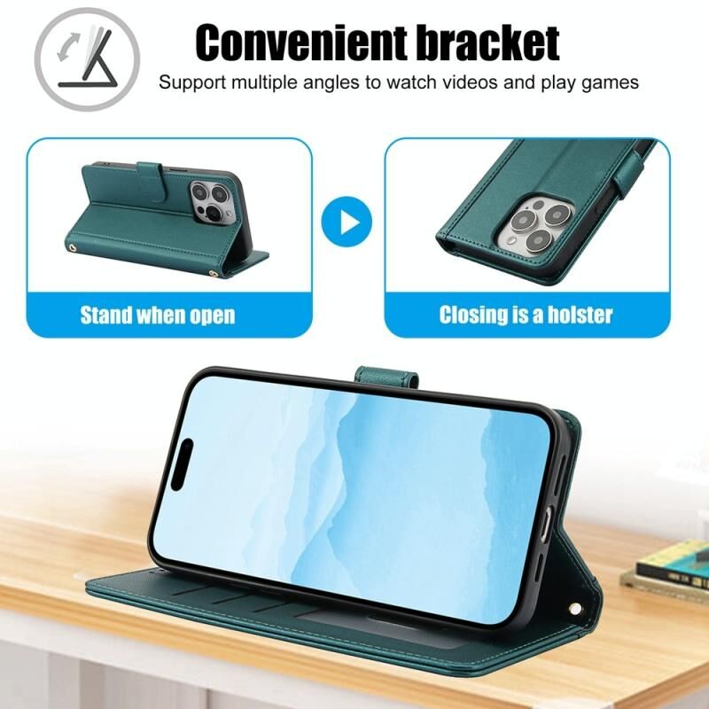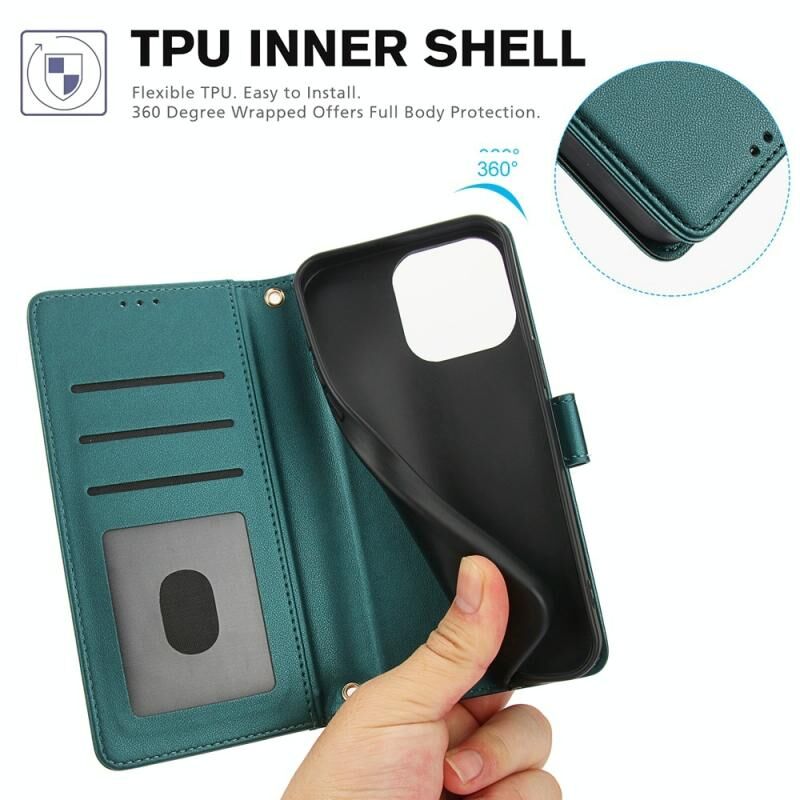 Θήκη τηλεφώνου από δέρμα με καθαρό χρώμα και υποδοχές καρτών για iPhone 13 Pro Max, με διπλό κορδόνι (Πράσινο)