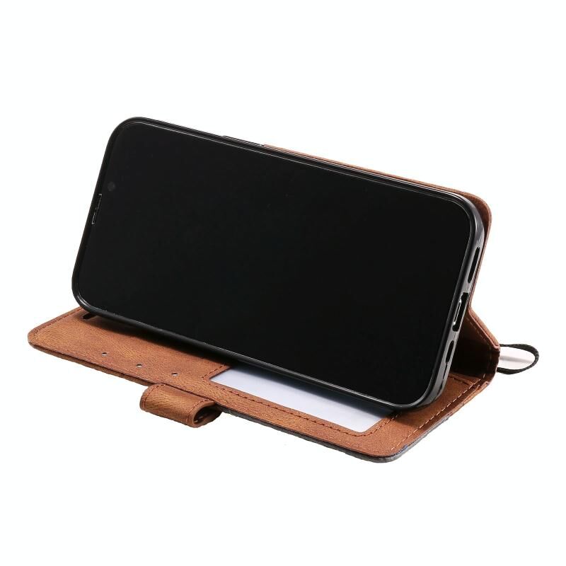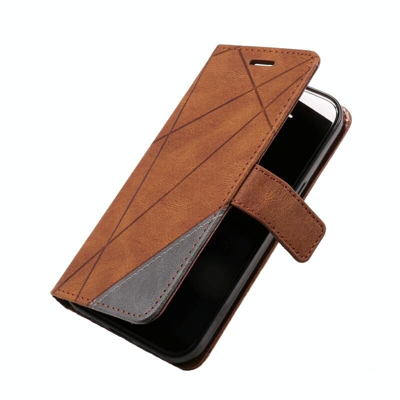 For iPhone 13 Pro Max Skin Feel Splicing Horizontal Flip Leather Phone Case (Brown)