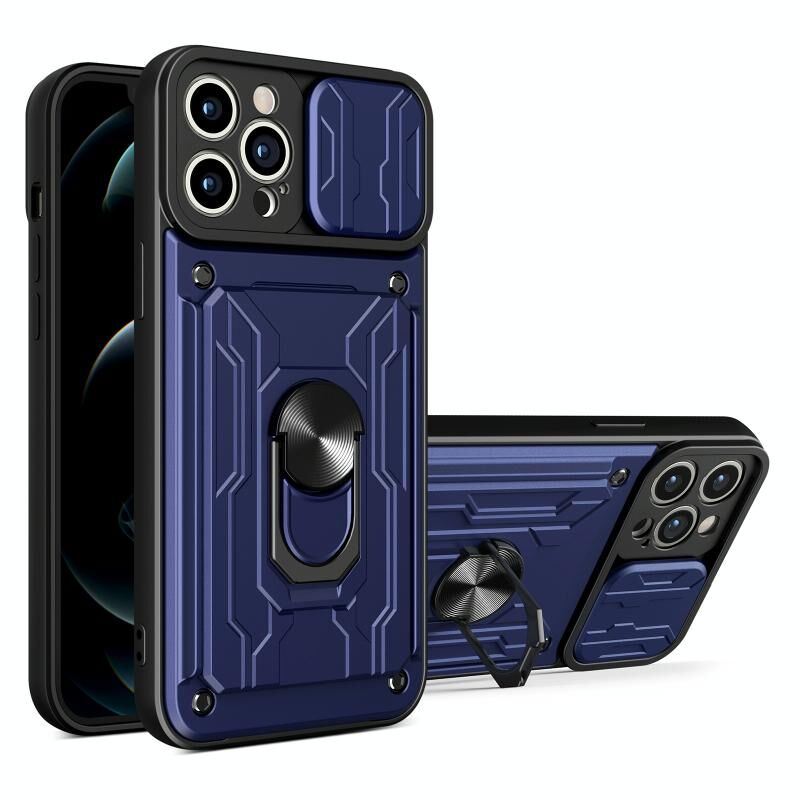 For iPhone 13 Pro Max Sliding Camshield Card Phone Case (Blue)