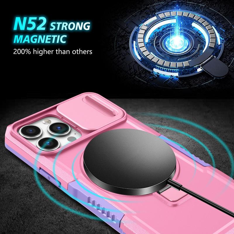 Για iPhone 13 Pro Max Θήκη με Σχέδιο Camshield & MagSafe - TPU/PC (Μωβ Ροζ)
