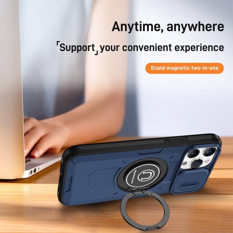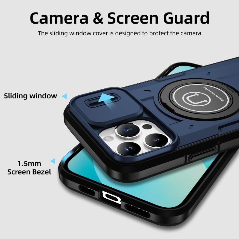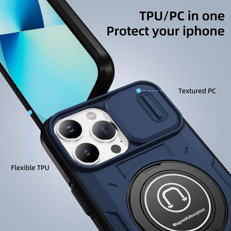 For iPhone 13 Pro Max Sliding Camshield TPU Hybrid PC Magnetic Holder Phone Case(Dark Blue)