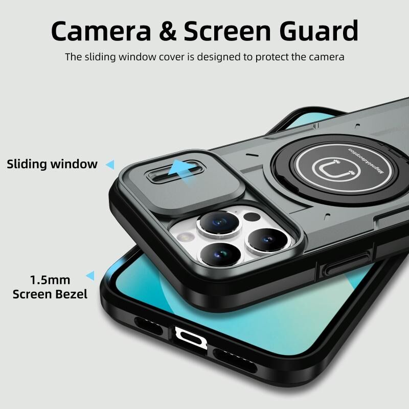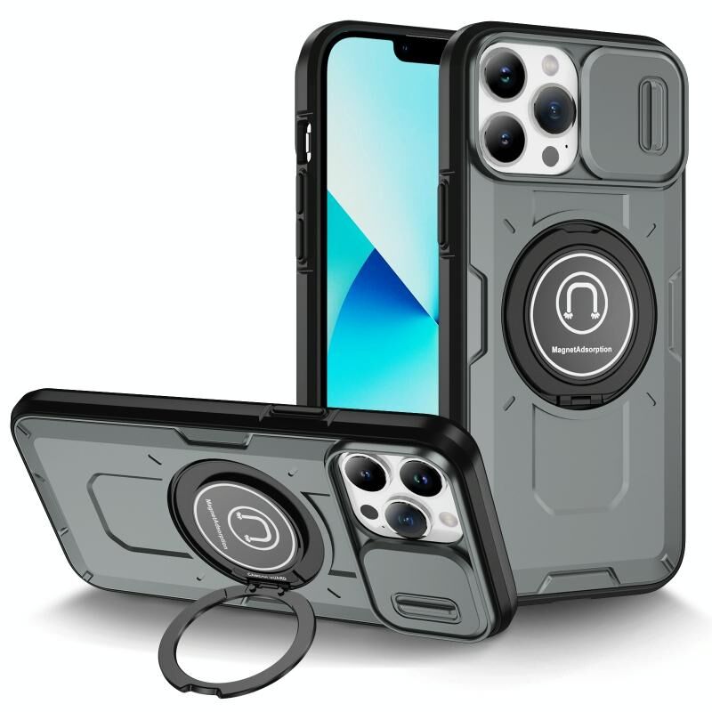 For iPhone 13 Pro Max Sliding Camshield TPU Hybrid PC Magnetic Holder Phone Case(Grey)