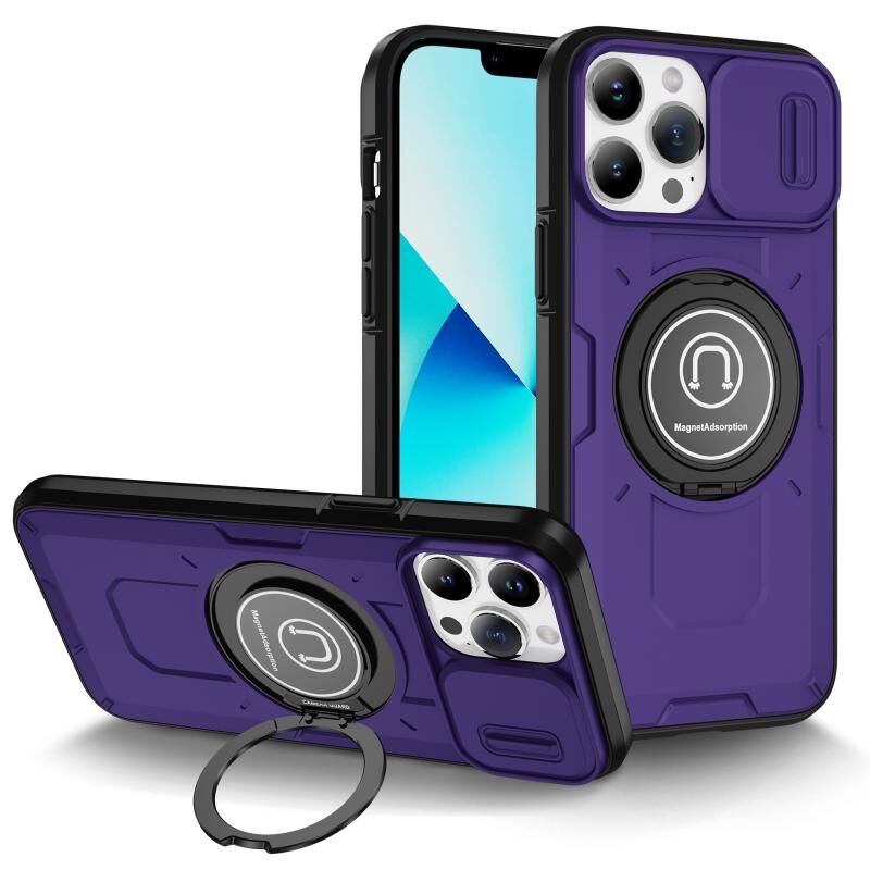 For iPhone 13 Pro Max Sliding Camshield TPU Hybrid PC Magnetic Holder Phone Case(Purple)