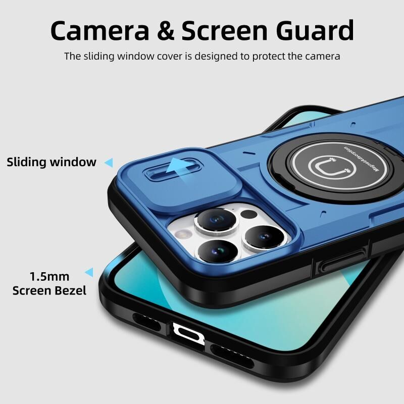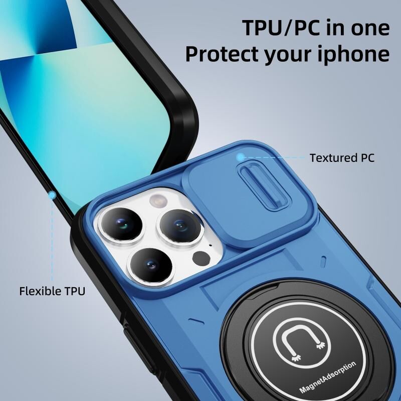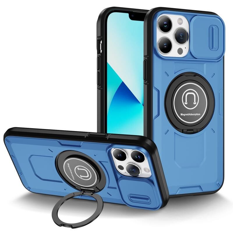 For iPhone 13 Pro Max Sliding Camshield TPU Hybrid PC Magnetic Holder Phone Case(Sky Blue)