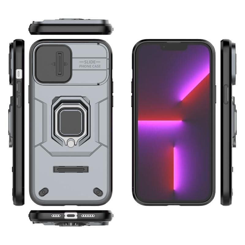 Θήκη κινητού τηλεφώνου για iPhone 13 Pro Max με ολισθαίνουσα προστασία κάμερας Camshield, κατασκευασμένη από TPU + PC, ανθεκτική σε κρούσεις και με βάση στήριξης (Γκρι)