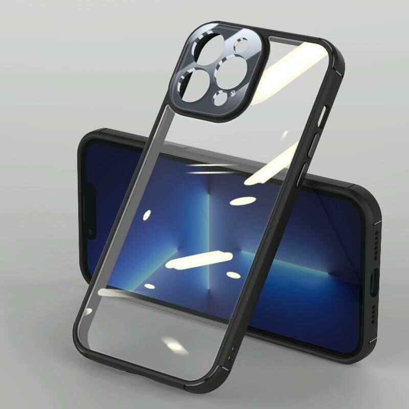 For iPhone 13 Pro Max Soft Shield Acrylic Transparent PC Phone Case (Black)