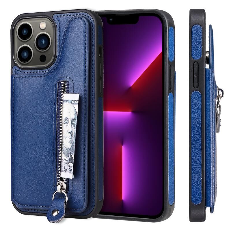 Θήκη κινητού τηλεφώνου για iPhone 13 Pro Max, μονόχρωμη, με διπλό κουμπώμα και φερμουάρ, αντικραδασμική (Μωβ)