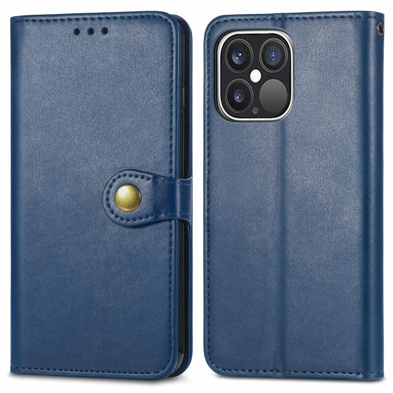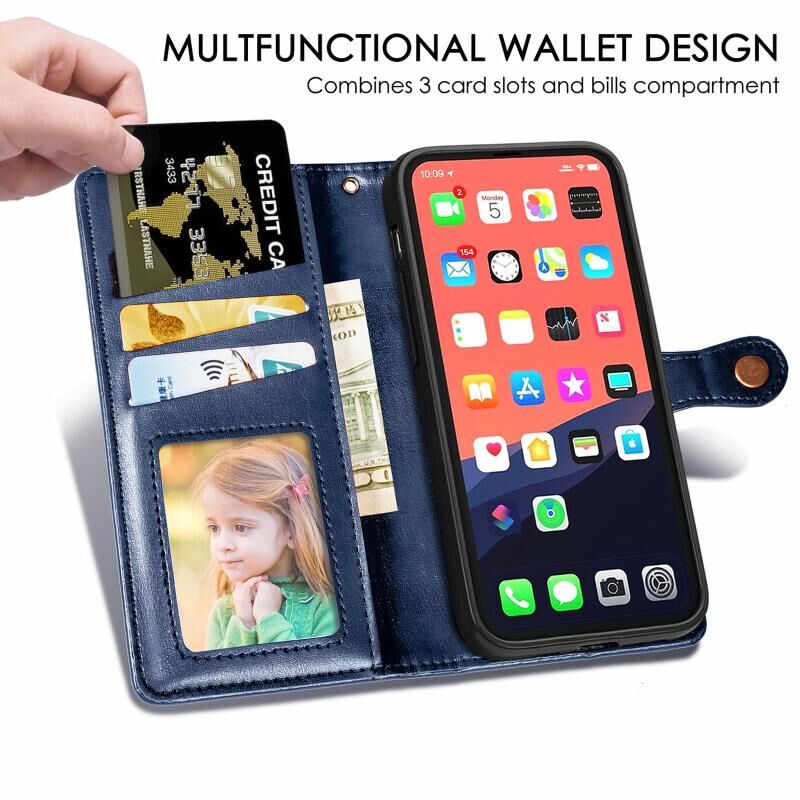 Θήκη τηλεφώνου για iPhone 13 Pro Max από δέρμα με μονόχρωμο λουρί, κορνίζα φωτογραφίας, θήκη για κάρτες, πορτοφόλι και λειτουργία βάσης (Μαύρο)