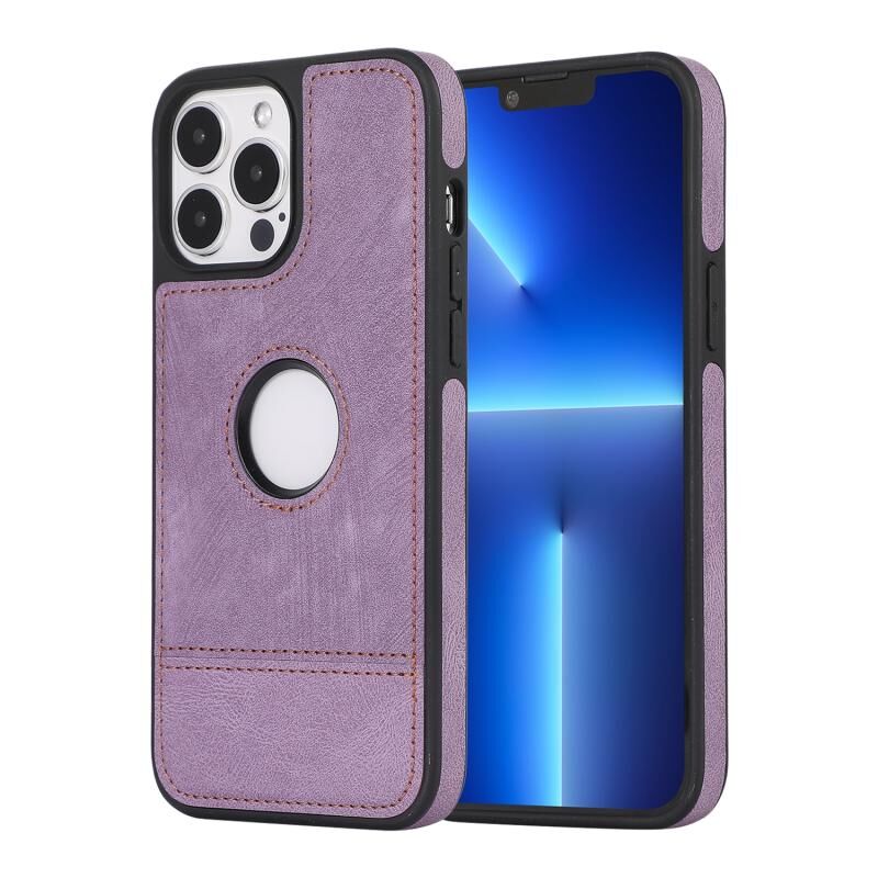 For iPhone 13 Pro Max Splicing Sewing Hollow Cutout PU Phone Case(Purple)