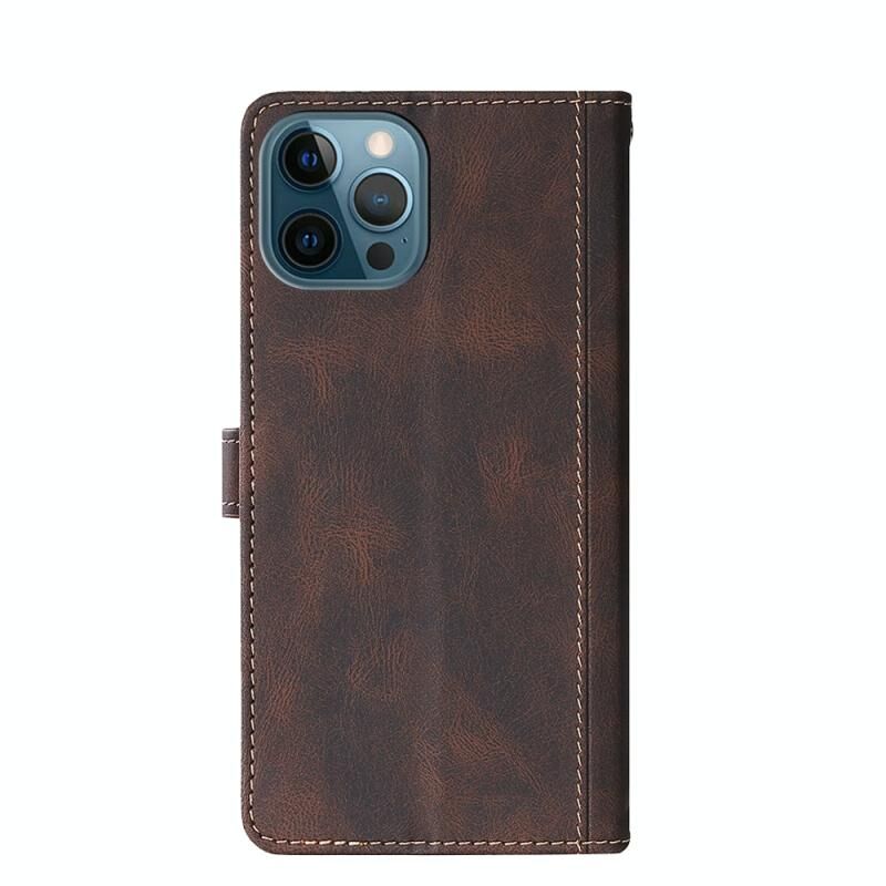 For iPhone 13 Pro Max Stitching Skin Feel Magnetic Buckle Horizontal Flip PU Leather Case with Holder & Card Slots & Wallet (Brown)