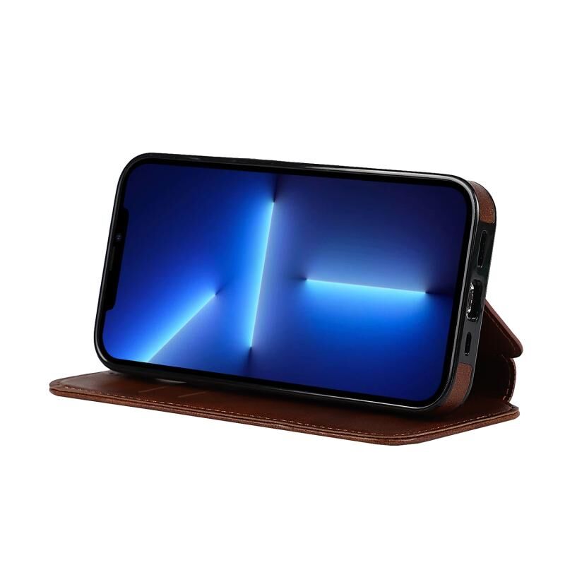 For iPhone 13 Pro Max Strong Magnetic Closure PU + TPU Leather Case with Card Slots & Holder (Brown)