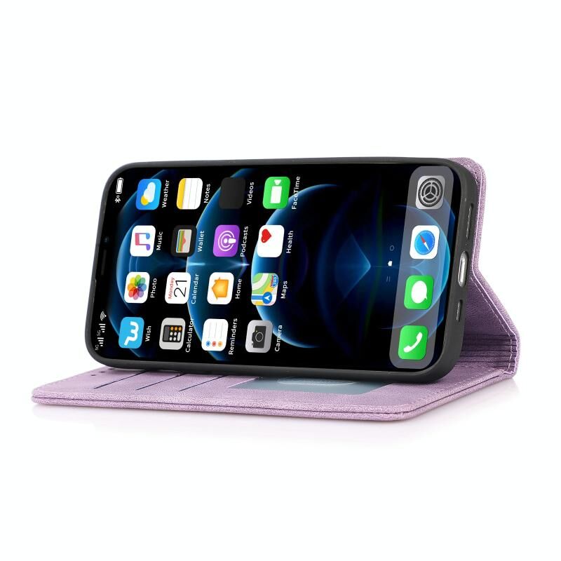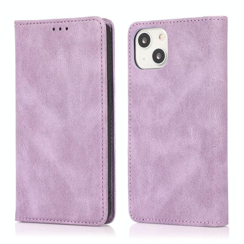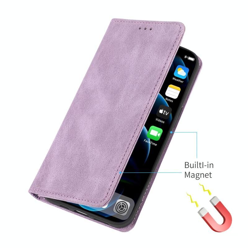 For iPhone 13 Pro Max Strong Magnetic Crazy Horse Texture Horizontal Flip Leather Case with Holder & Card Slots & Wallet (Purple)