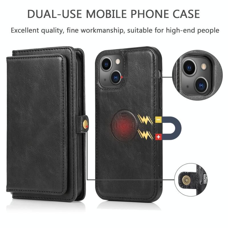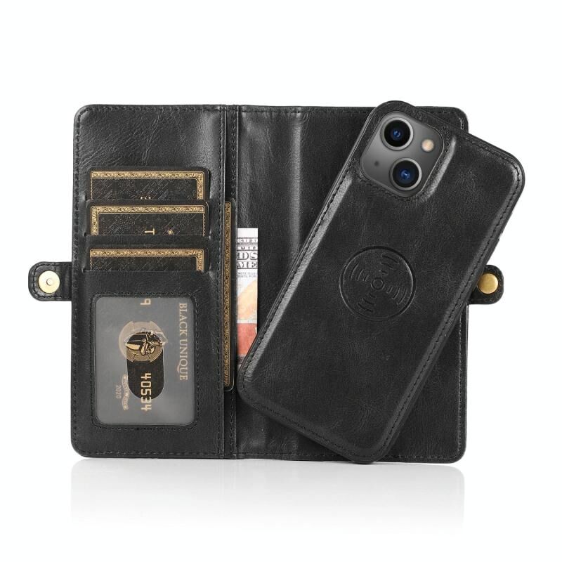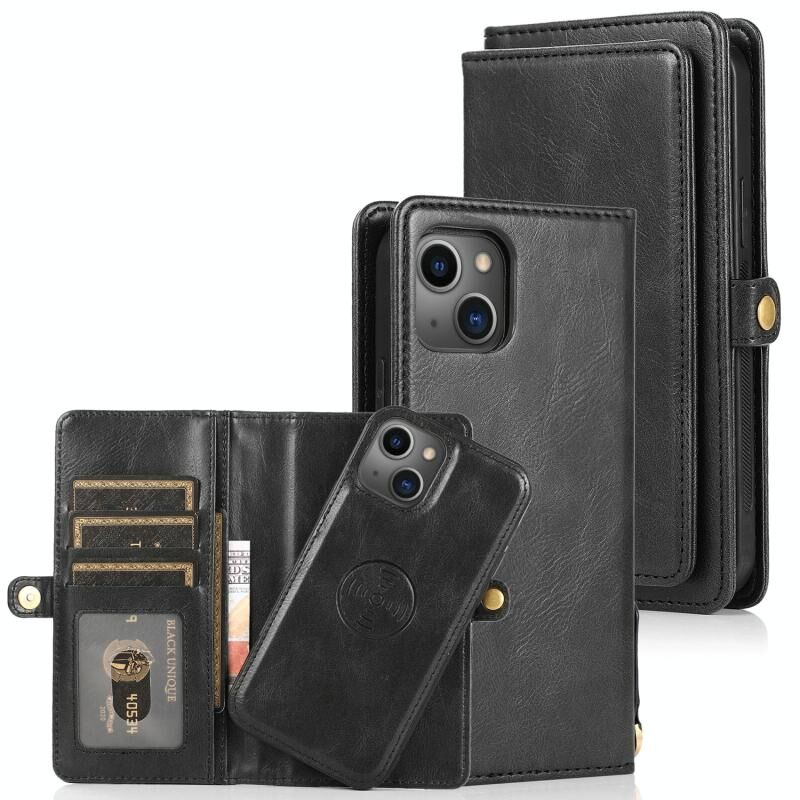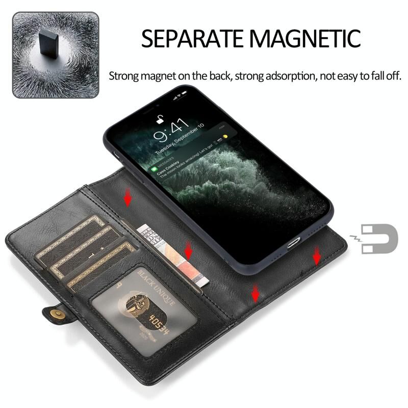 For iPhone 13 Pro Max Strong Magnetic Detachable Horizontal Flip Leather Case with Card Slots & Wallet (Black)