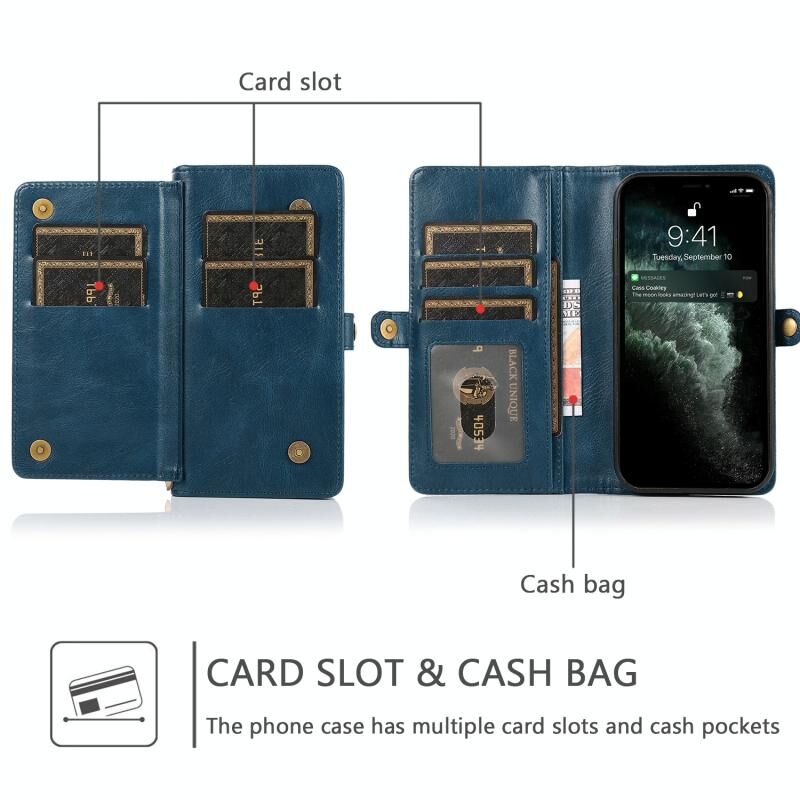 For iPhone 13 Pro Max Strong Magnetic Detachable Horizontal Flip Leather Case with Card Slots & Wallet (Blue)