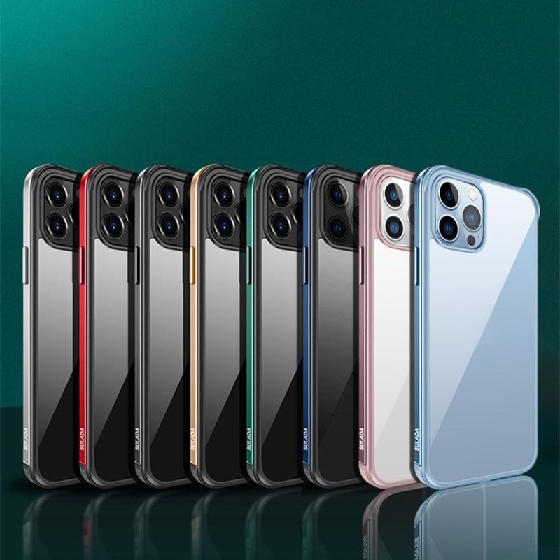 For iPhone 13 Pro Max SULADA Metal Frame + Nano Glass + TPU Phone Case (Dark Blue) (SULADA)
