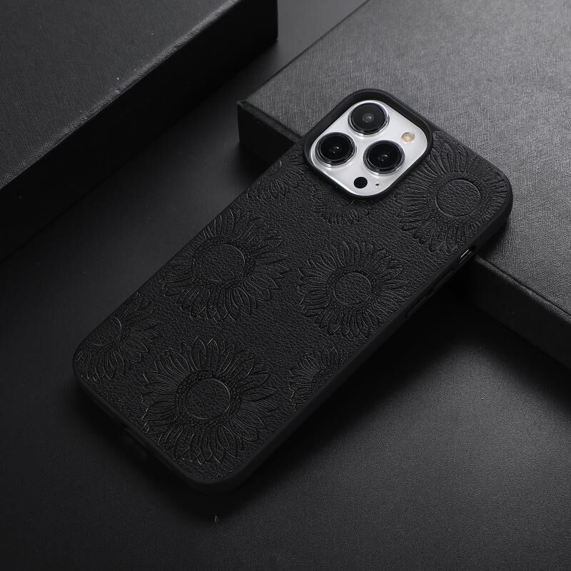 Θήκη κινητού τηλεφώνου για iPhone 13 Pro Max με σχέδιο ηλίανθου, κατασκευασμένη από PU+TPU+PC, ανθεκτική σε κρούσεις (Πορτοκαλί)
