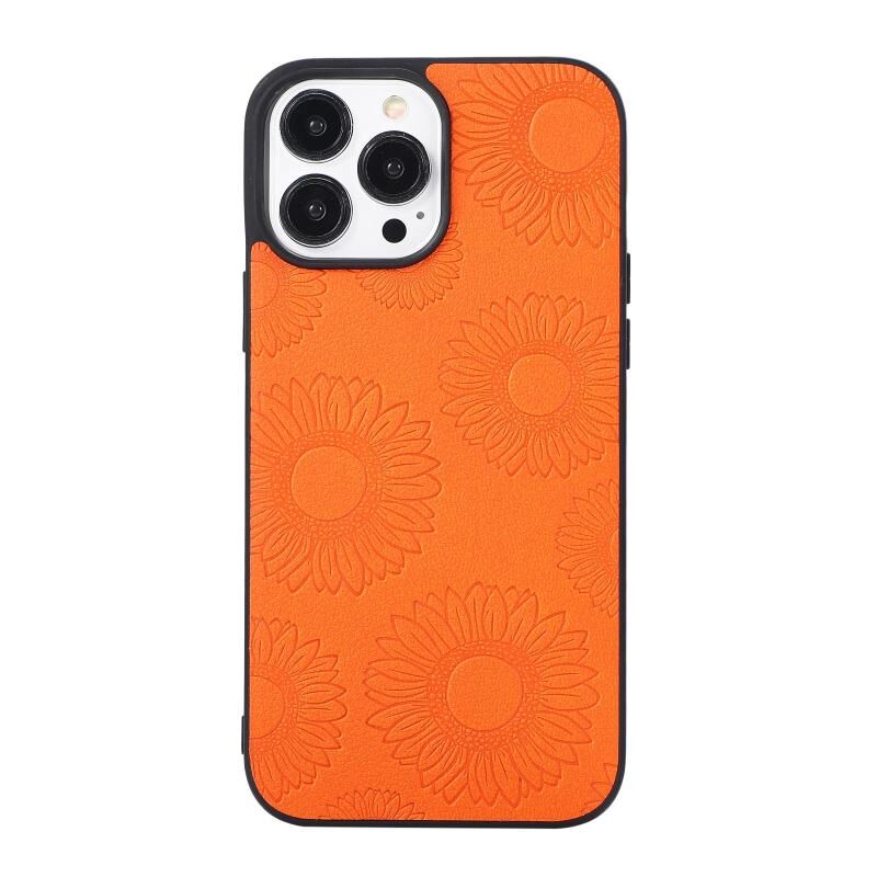 Θήκη κινητού τηλεφώνου για iPhone 13 Pro Max με σχέδιο ηλίανθου, κατασκευασμένη από PU+TPU+PC, ανθεκτική σε κρούσεις (Πορτοκαλί)