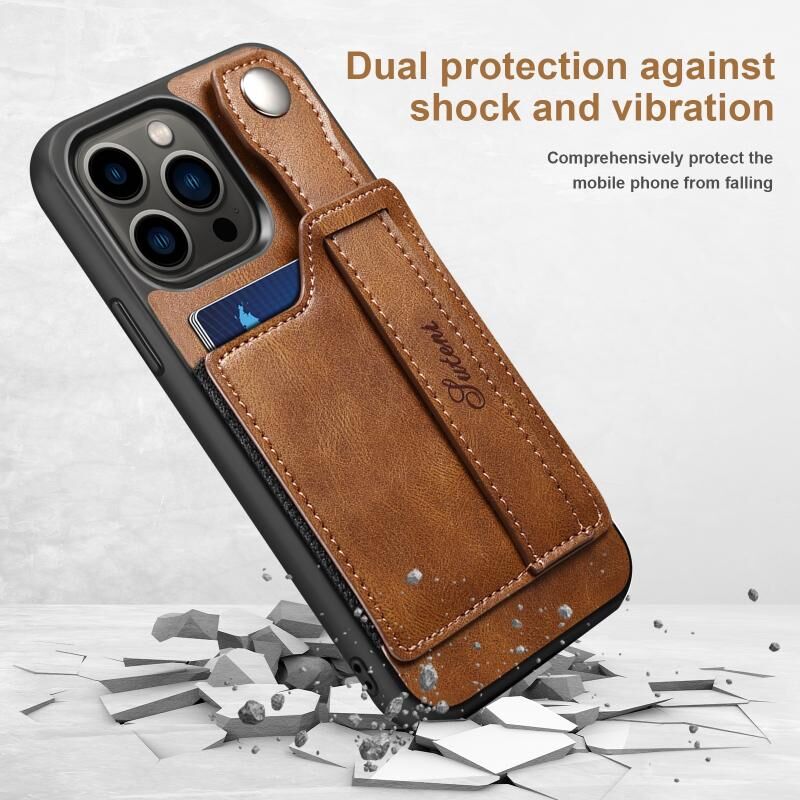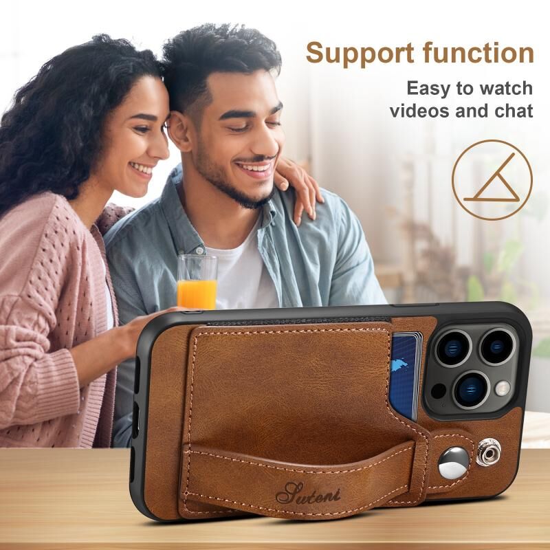 For iPhone 13 Pro Max Suteni 215 Wrist Strap PU Phone Case (Brown) (Suteni)