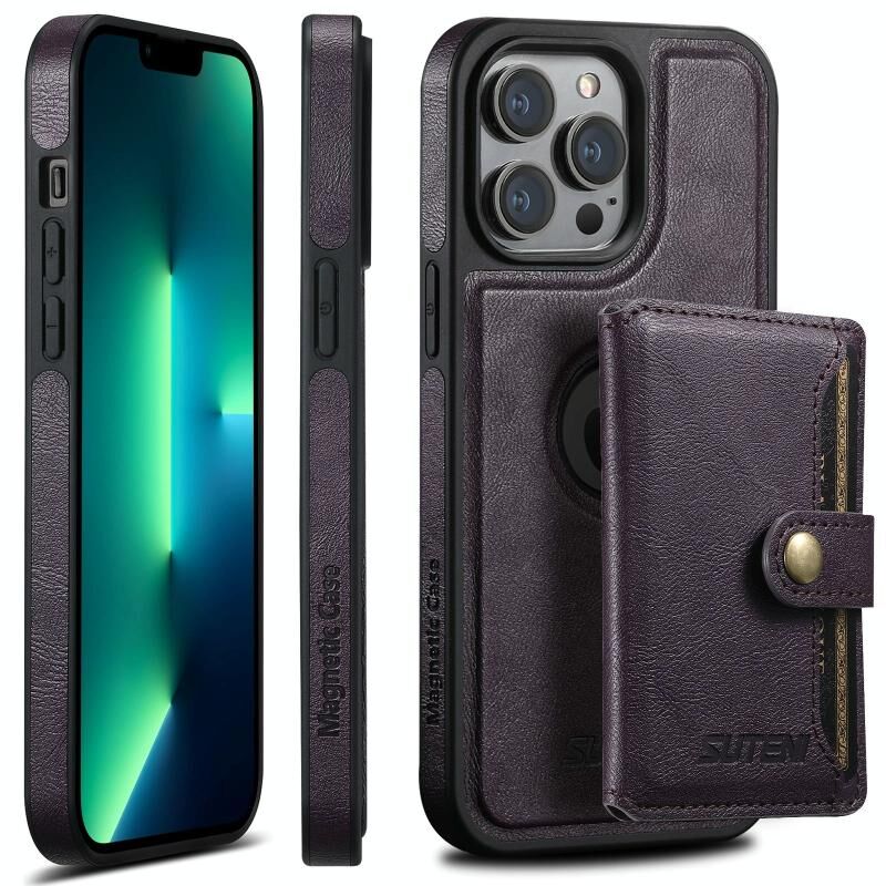 Θήκη τηλεφώνου για iPhone 13 Pro Max Suteni M1 Oil Wax MagSafe αποσπώμενη οριζόντια θήκη καρτών (Μωβ) (Suteni)