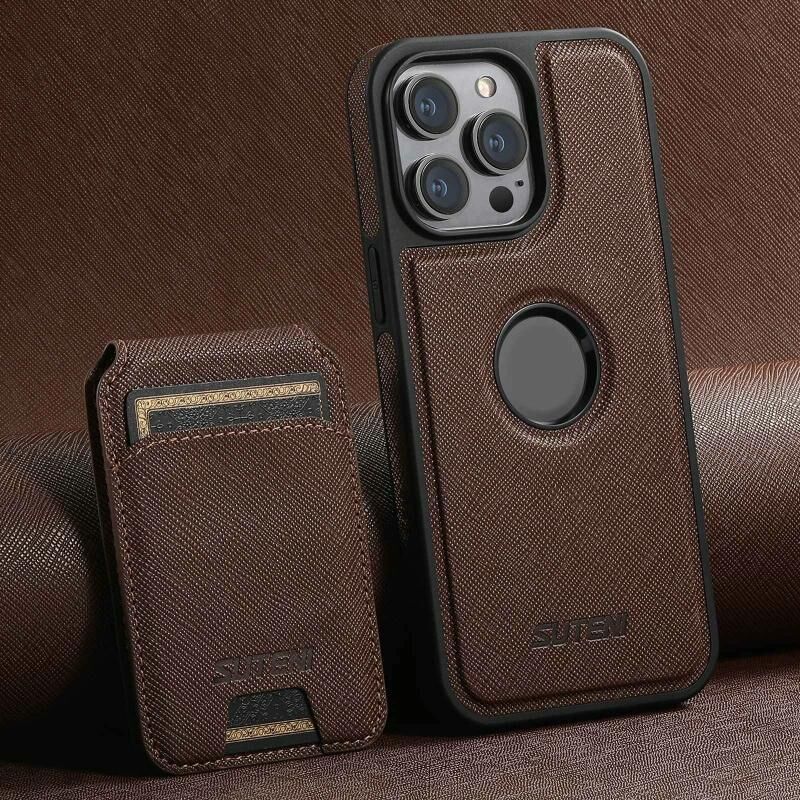 Θήκη τηλεφώνου με κάθετη θήκη καρτών MagSafe, από δέρμα Suteni M2 με διακριτική υφή (Καφέ) (Suteni) για iPhone 13 Pro Max