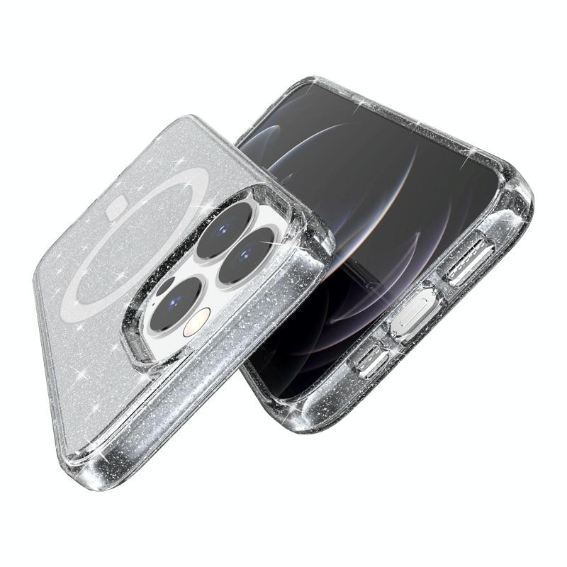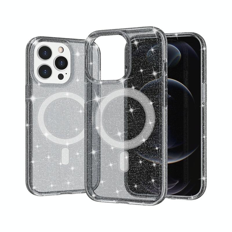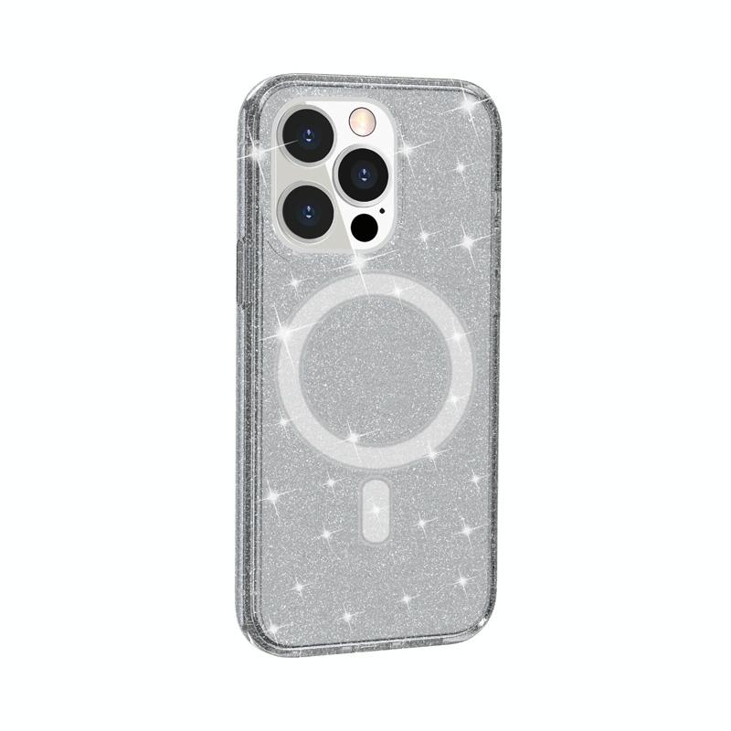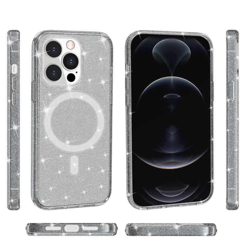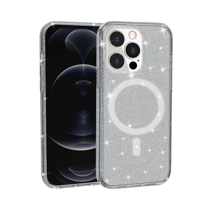For iPhone 13 Pro Max Terminator Style Glitter Powder MagSafe Magnetic Phone Case (Grey)