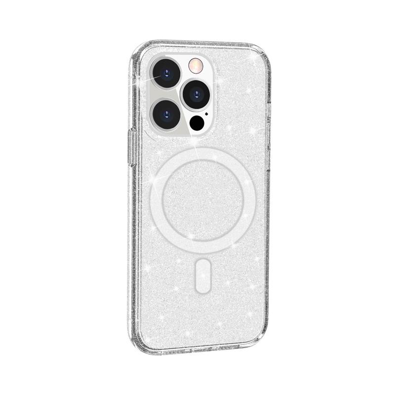 For iPhone 13 Pro Max Terminator Style Glitter Powder MagSafe Magnetic Phone Case (White)
