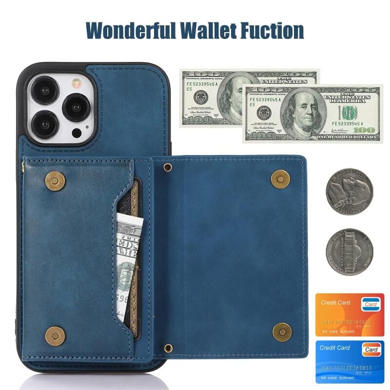 Θήκη τηλεφώνου από δέρμα με προστασία RFID για iPhone 13 Pro Max, τριπλή, με κορδόνι (Μαύρο)