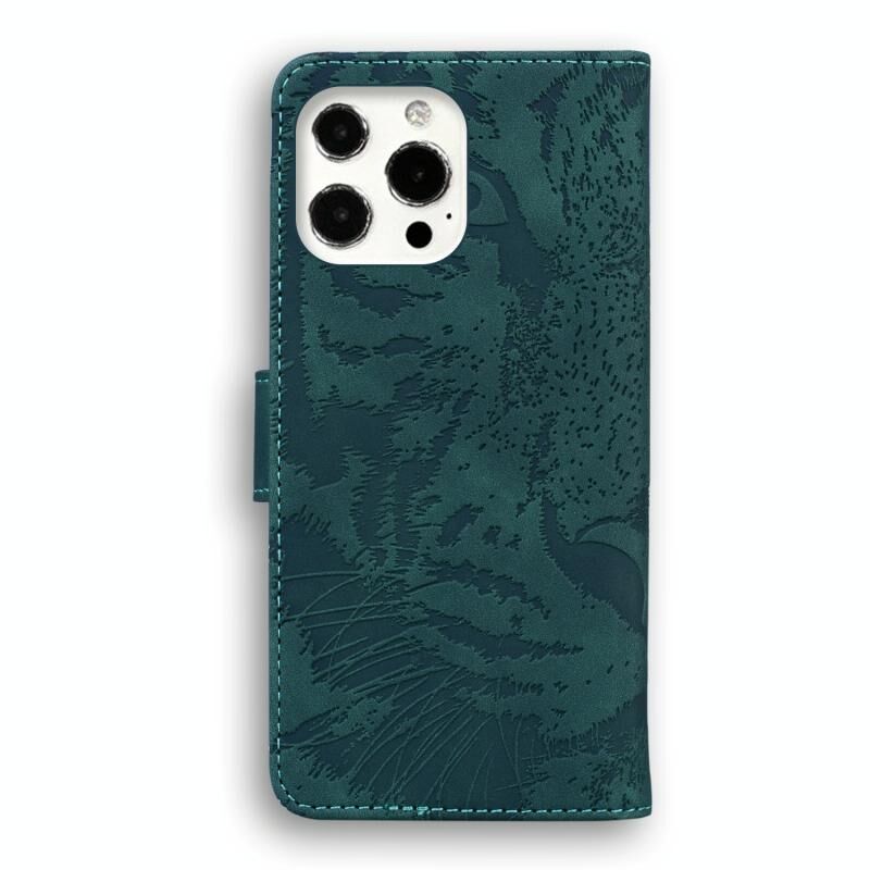 For iPhone 13 Pro Max Tiger Embossing Pattern Horizontal Flip Leather Case with Holder & Card Slots & Wallet (Green)