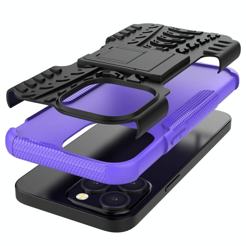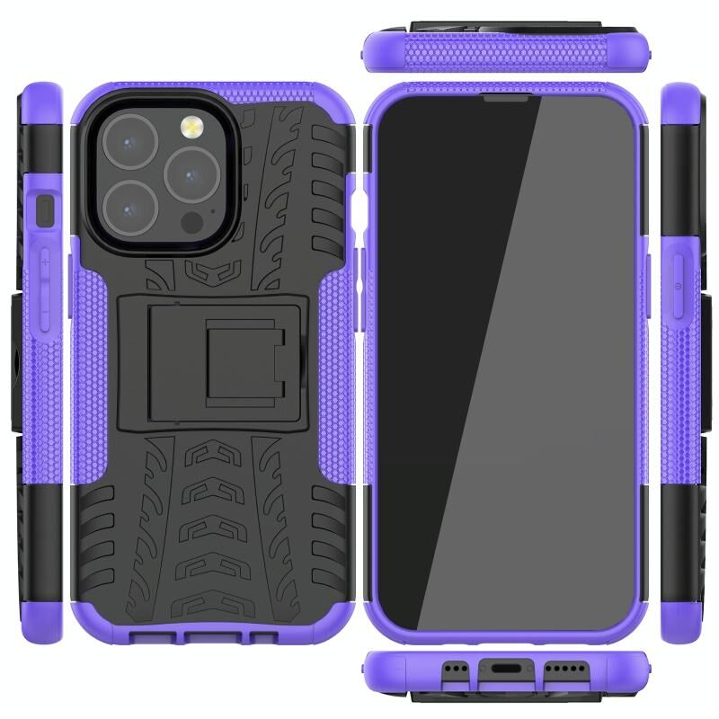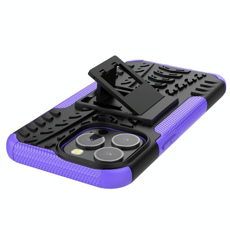 For iPhone 13 Pro Max Tire Texture Shockproof TPU+PC Protective Case with Holder (Purple)