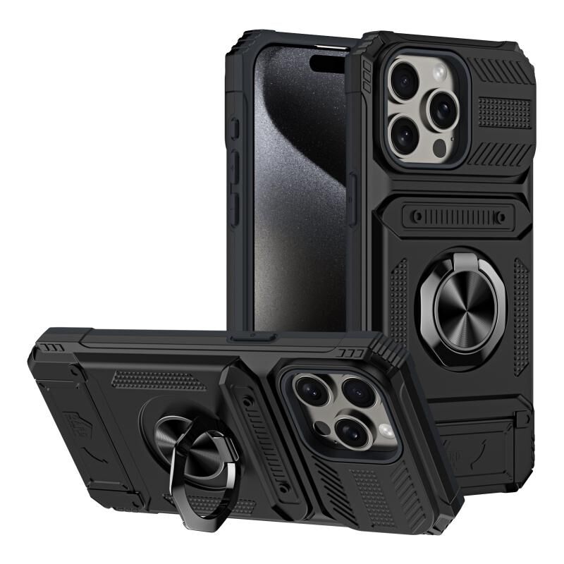 Θήκη κινητού τηλεφώνου για iPhone 13 Pro Max από TPU+PC με αντικραδασμική προστασία και μεταλλική βάση στήριξης (Μαύρο)