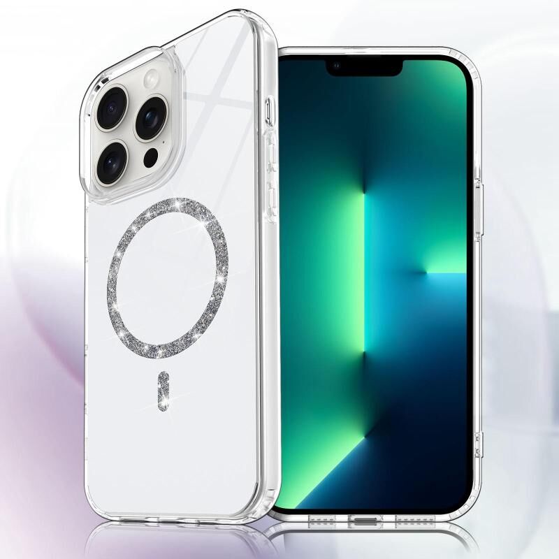 For iPhone 13 Pro Max Transparent MagSafe Glitter Powder Acrylic Phone Case(White)