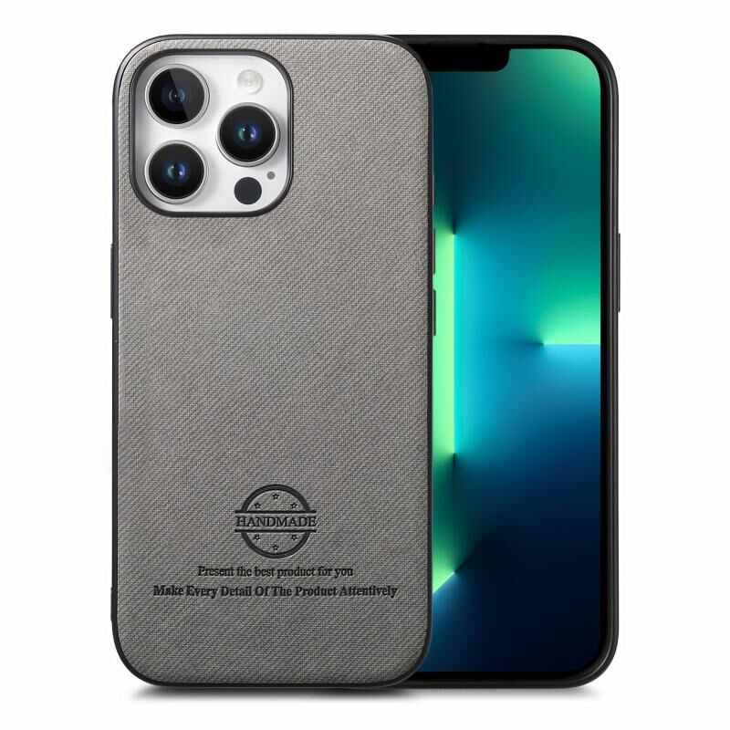 For iPhone 13 Pro Max Twill Fabric Leather Skin Back Phone Case(Gray)