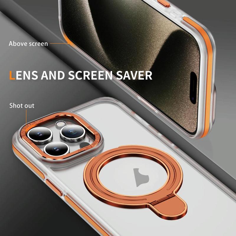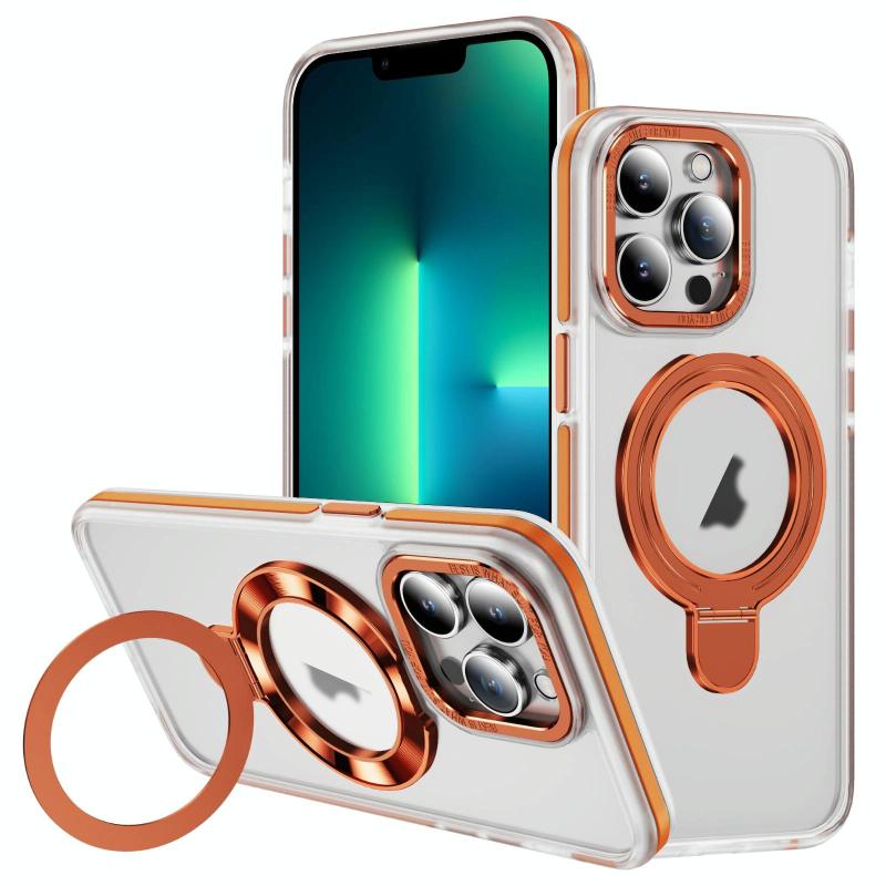 For iPhone 13 Pro Max Two Color TPU Hybrid Acrylic MagSafe Magnetic Holder Phone Case(Orange)
