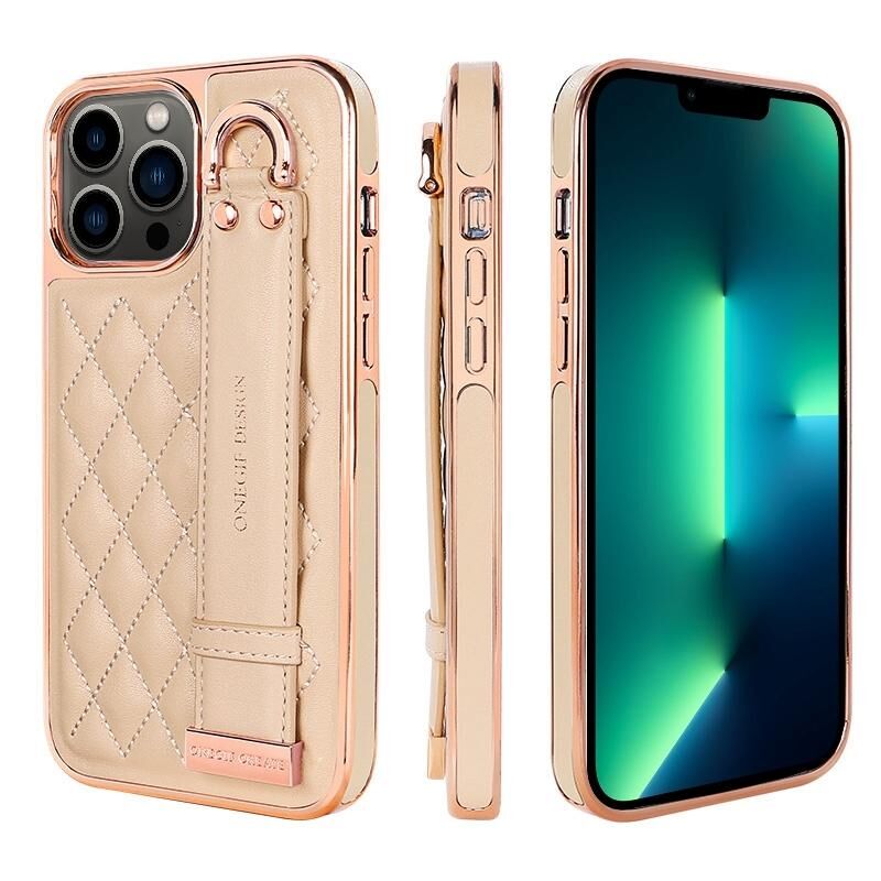 For iPhone 13 Pro Max VIETAO Rhombic Texture Wristband PU Phone Case(Pink) (VIETAO)