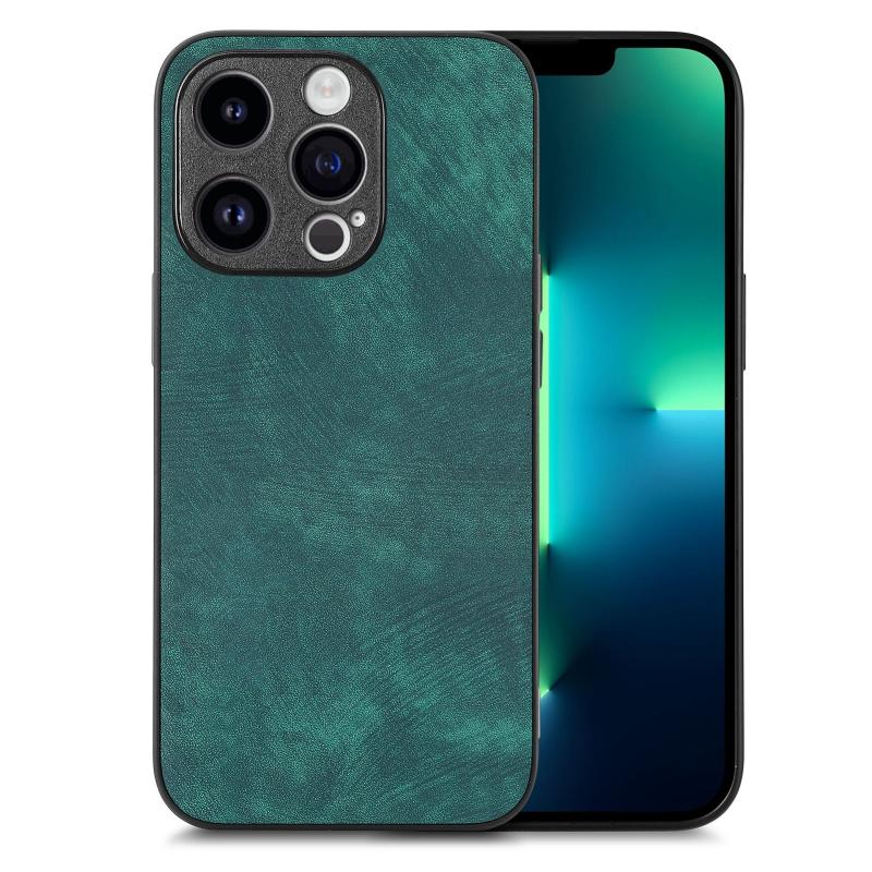 For iPhone 13 Pro Max Vintage Leather PC Back Cover Phone Case(Green)