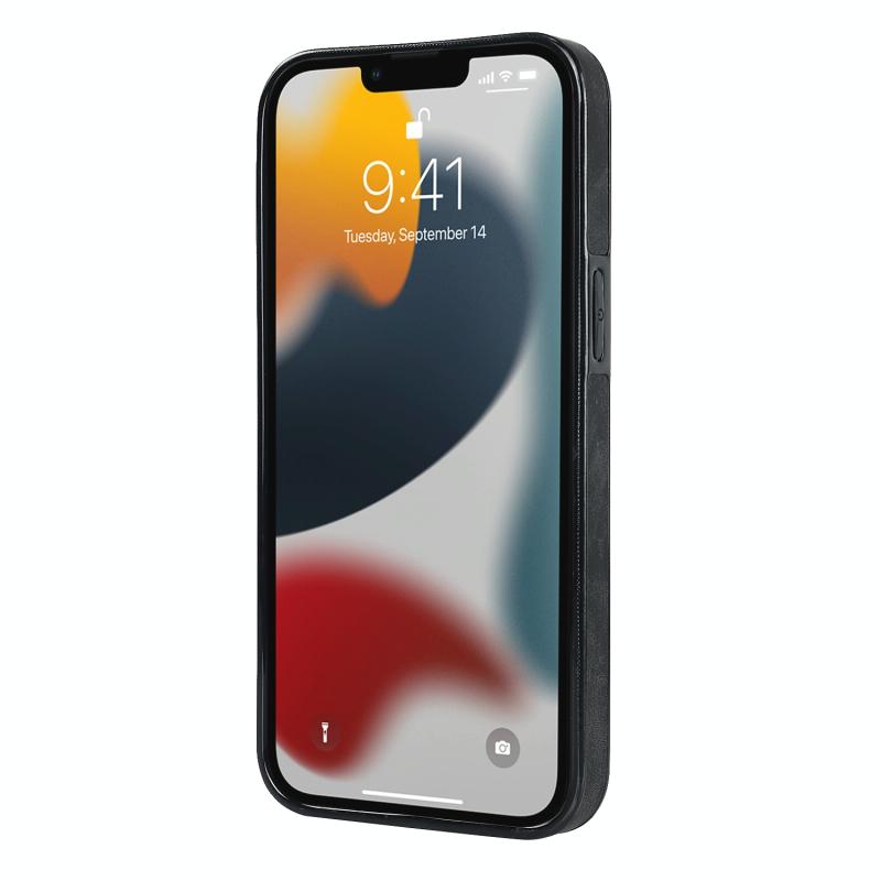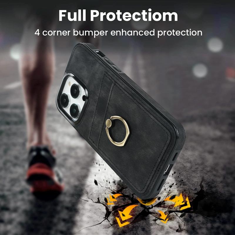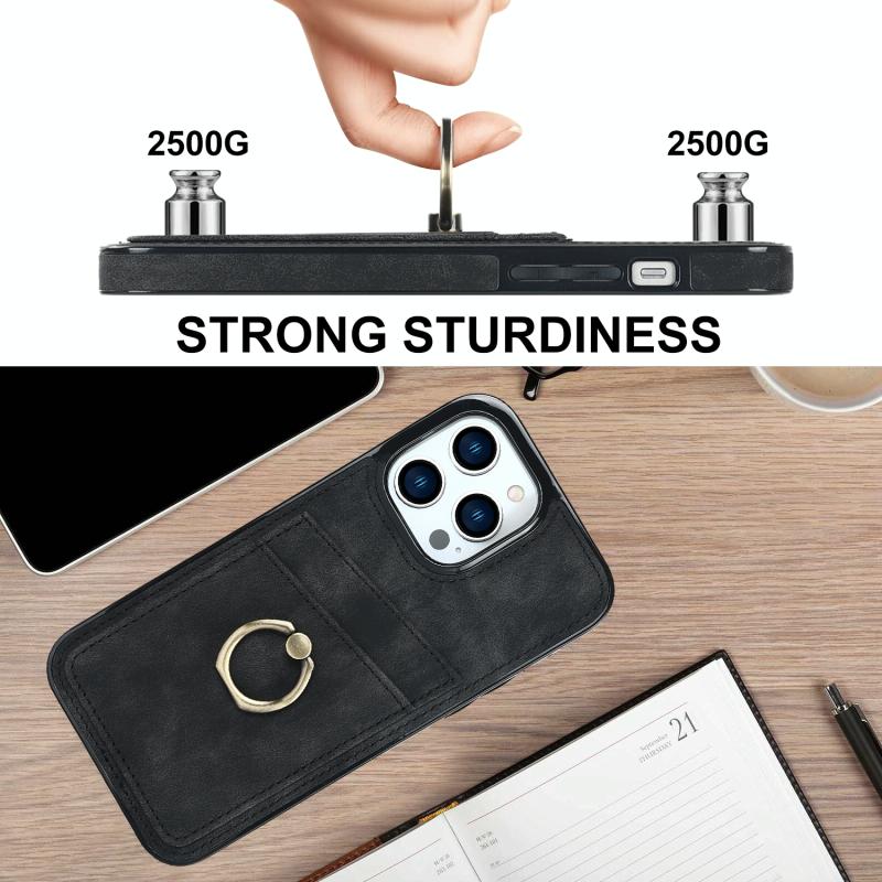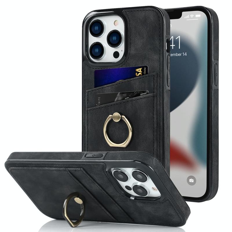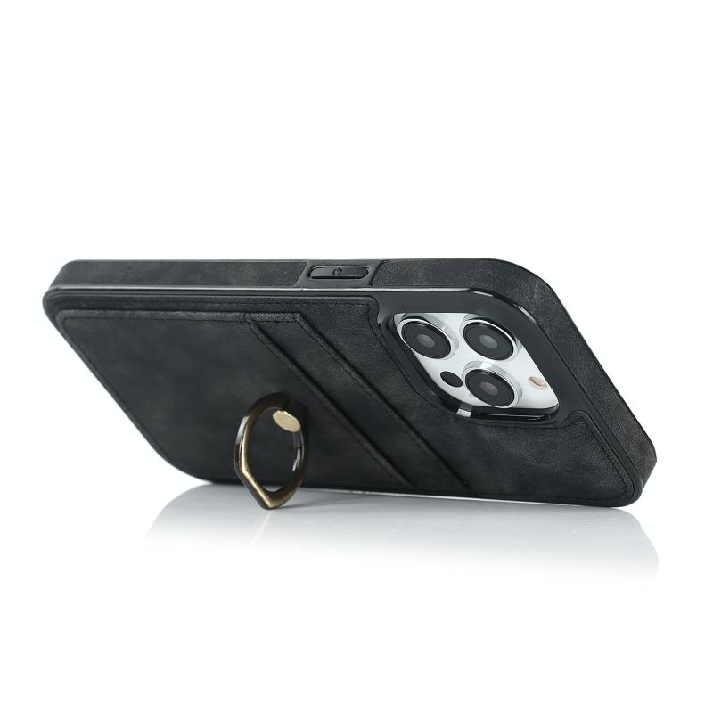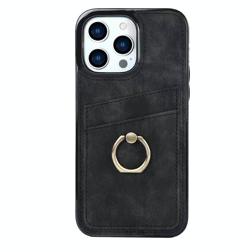 For iPhone 13 Pro Max Vintage Patch Leather Phone Case with Ring Holder (Black)