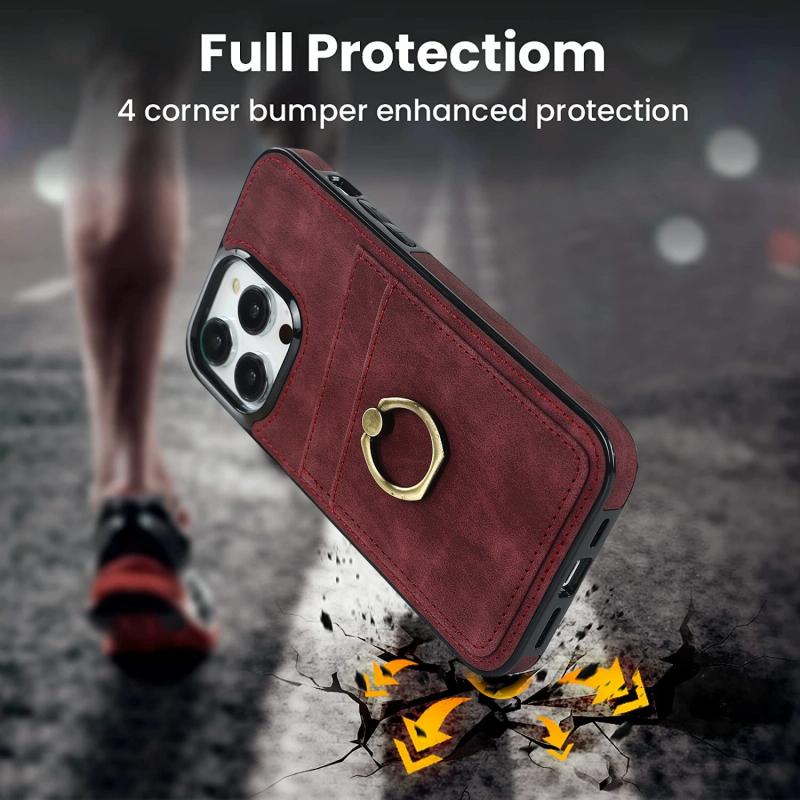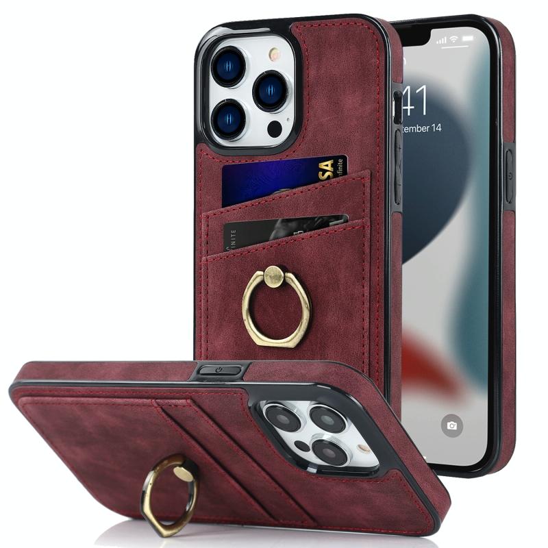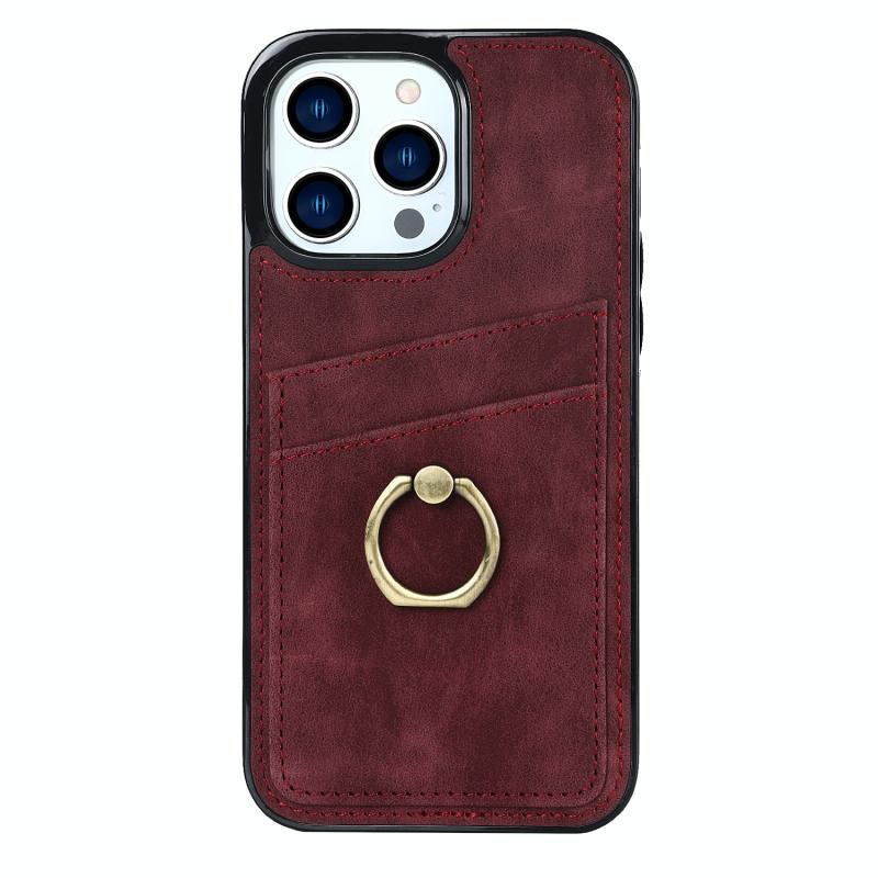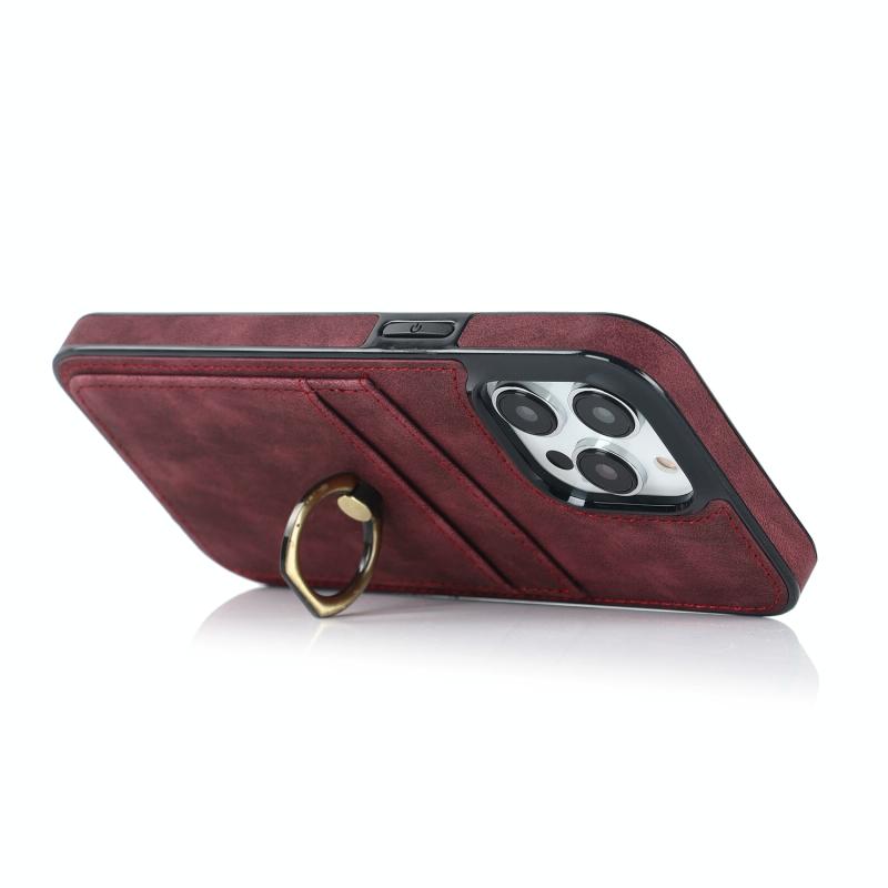 For iPhone 13 Pro Max Vintage Patch Leather Phone Case with Ring Holder (Red)