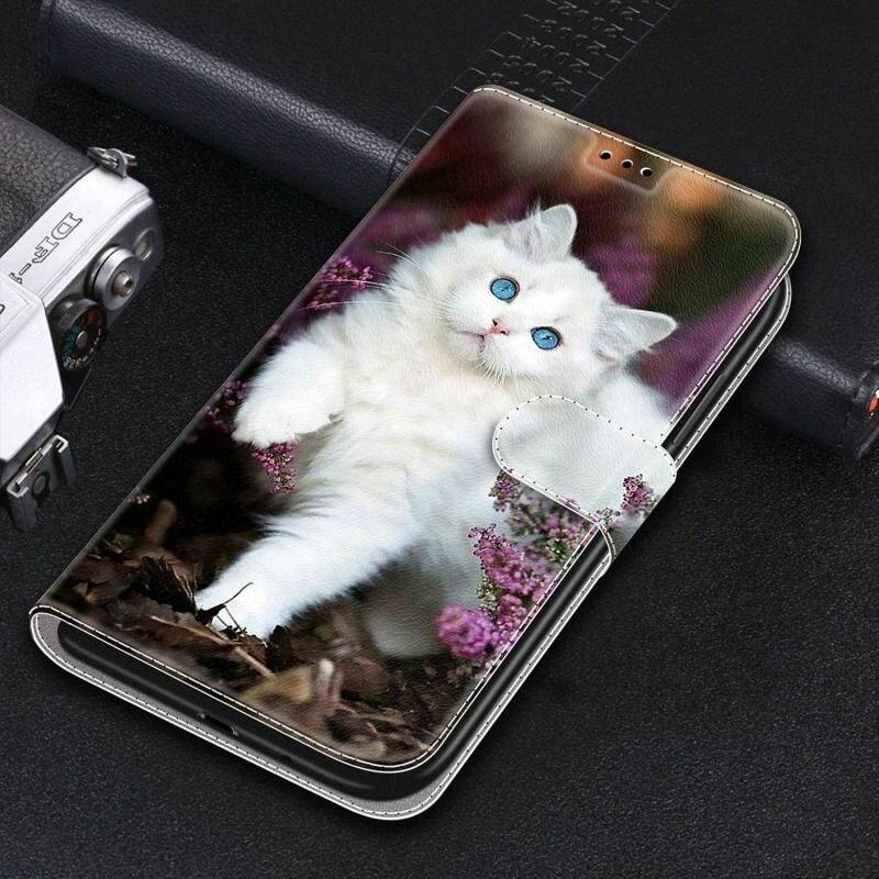 For iPhone 13 Pro Max Voltage Colored Drawing Magnetic Clasp Horizontal Flip PU Leather Case with Holder & Card Slots (C08 Flower Bush Big White Cat)