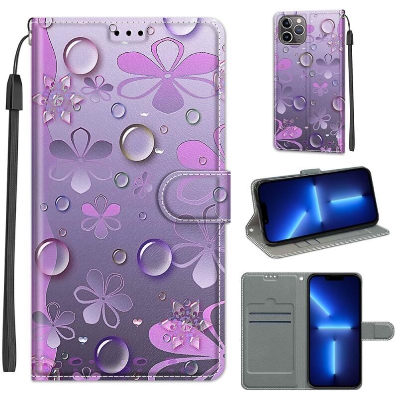 For iPhone 13 Pro Max Voltage Colored Drawing Magnetic Clasp Horizontal Flip PU Leather Case with Holder & Card Slots (C16 Water Drop Six Petal Flower)