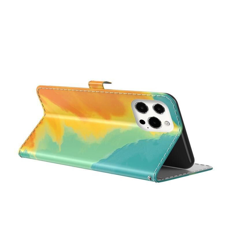 For iPhone 13 Pro Max Watercolor Pattern Horizontal Flip Leather Case with Holder & Card Slot & Wallet (Autumn Leaf)