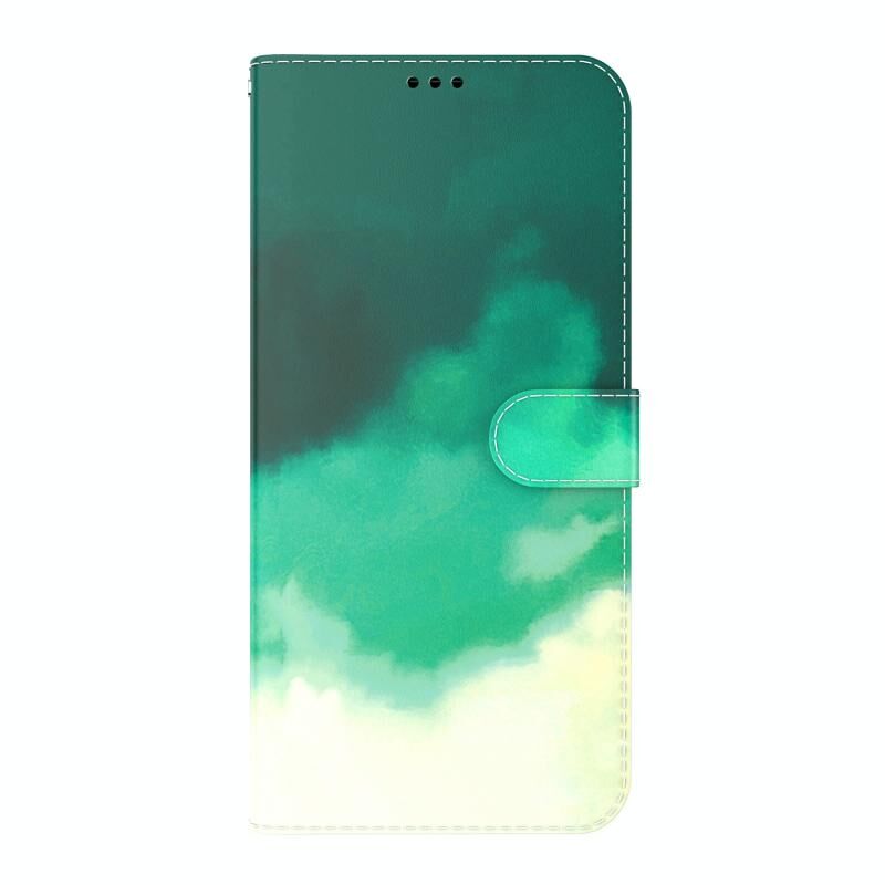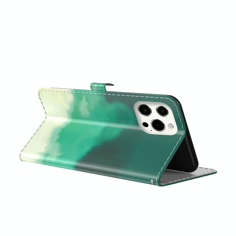 For iPhone 13 Pro Max Watercolor Pattern Horizontal Flip Leather Case with Holder & Card Slot & Wallet (Cyan Green)