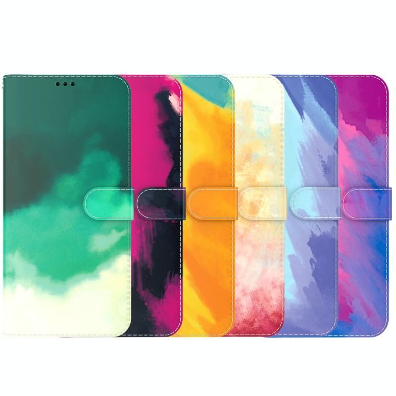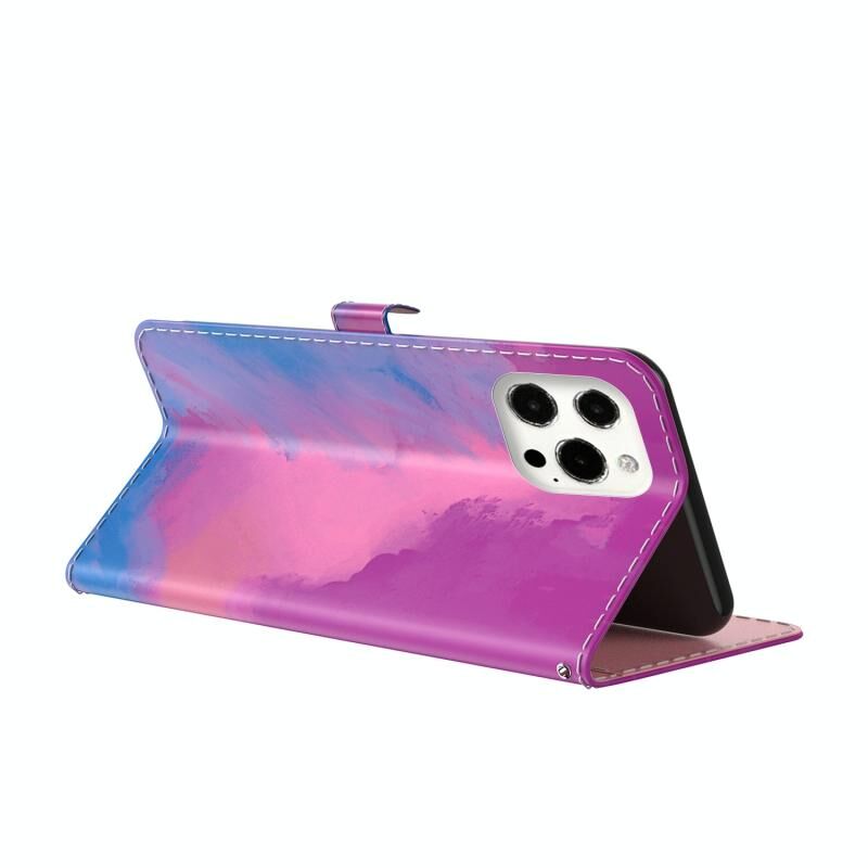 For iPhone 13 Pro Max Watercolor Pattern Horizontal Flip Leather Case with Holder & Card Slot & Wallet (Purple Red)