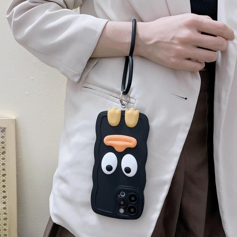 Θήκη σιλικόνης για iPhone 13 Pro Max με κυματιστό περίγραμμα, μεγάλο σχέδιο πάπιας και λουρί καρπού (Λευκό)