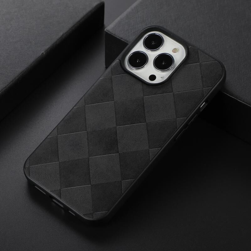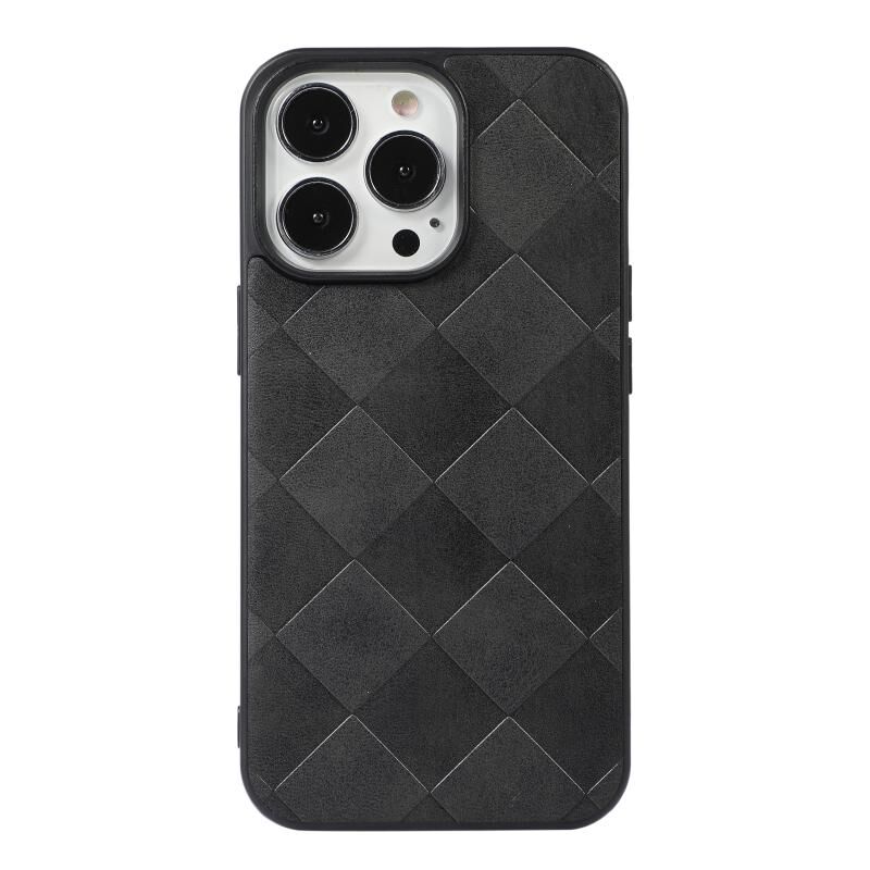 Θήκη τηλεφώνου για iPhone 13 Pro Max με ύφανση καρό από PU (Μαύρο)