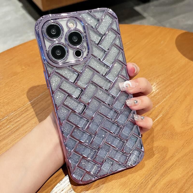 Θήκη τηλεφώνου για iPhone 13 Pro Max με υφαντή γρίλια, 3D επιμετάλλωση, χάραξη laser και λαμπερό χαρτί (Χρυσό ροζ)