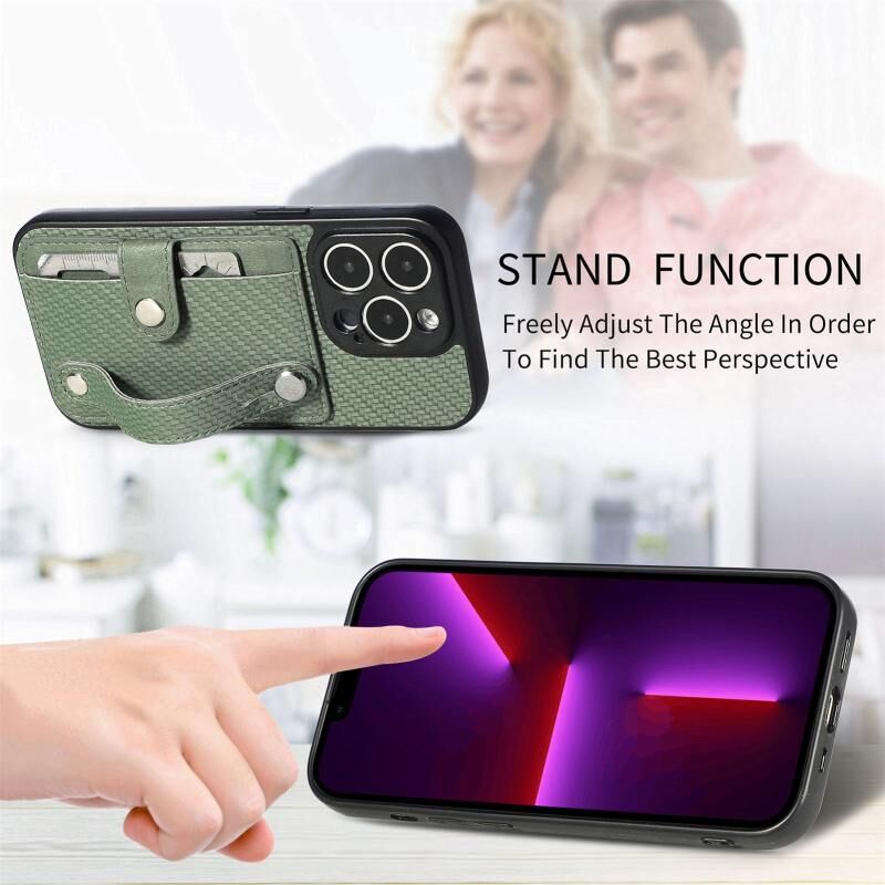 For iPhone 13 Pro Max Wristband Kickstand Card Wallet Back Cover Phone Case with Tool Knife(Green)
