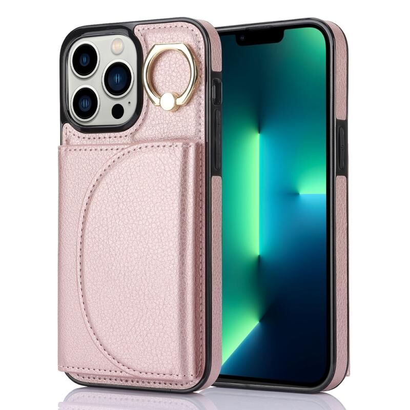 For iPhone 13 Pro Max YM007 Ring Holder Card Bag Skin Feel Phone Case(Rose Gold)