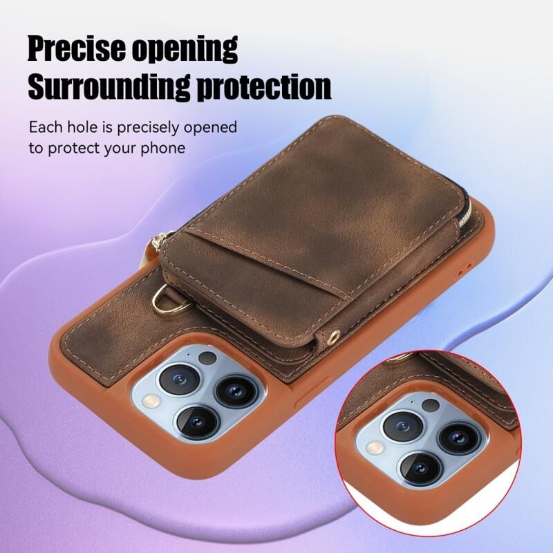 For iPhone 13 Pro Max Zipper Card Bag Back Cover Phone Case(Brown)